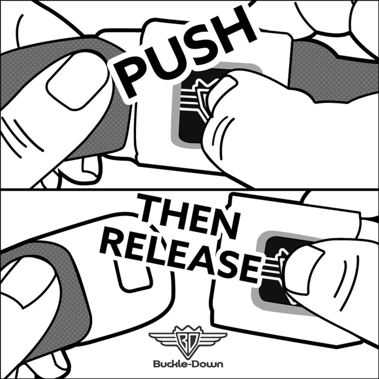 - Press the center button to release the miniature, authentic SeatBelt Buckle.
