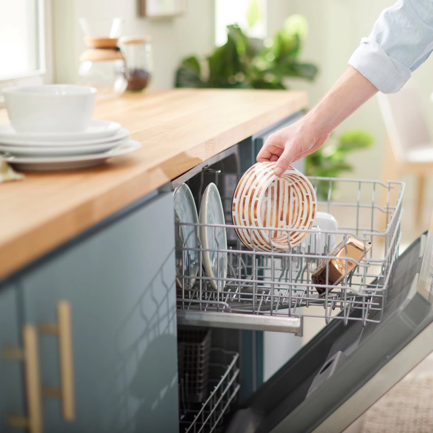 - The stainless-steel bowl easily comes out of the decorative base for cleaning.
