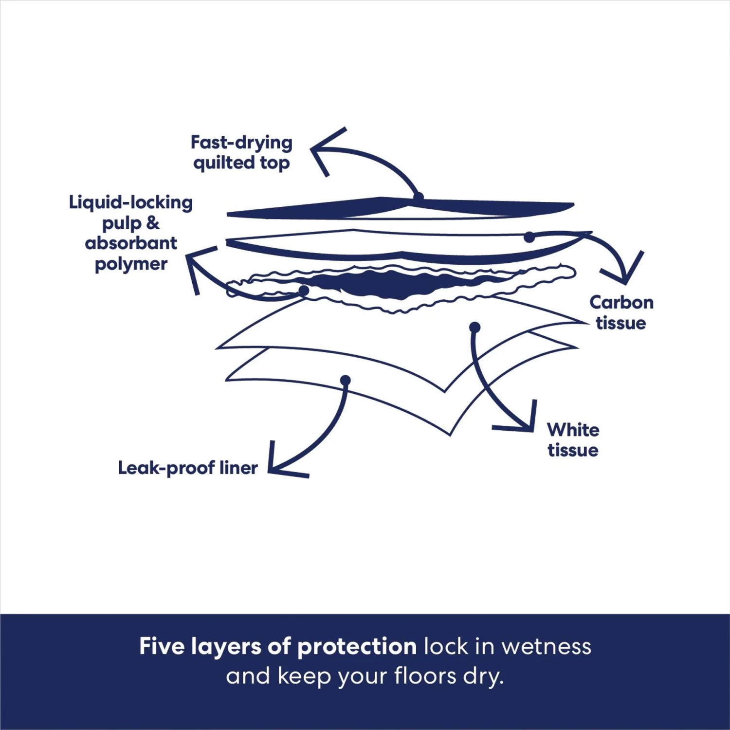 - Extra-large pads keep your floor dry and make it easy to clean up messes.