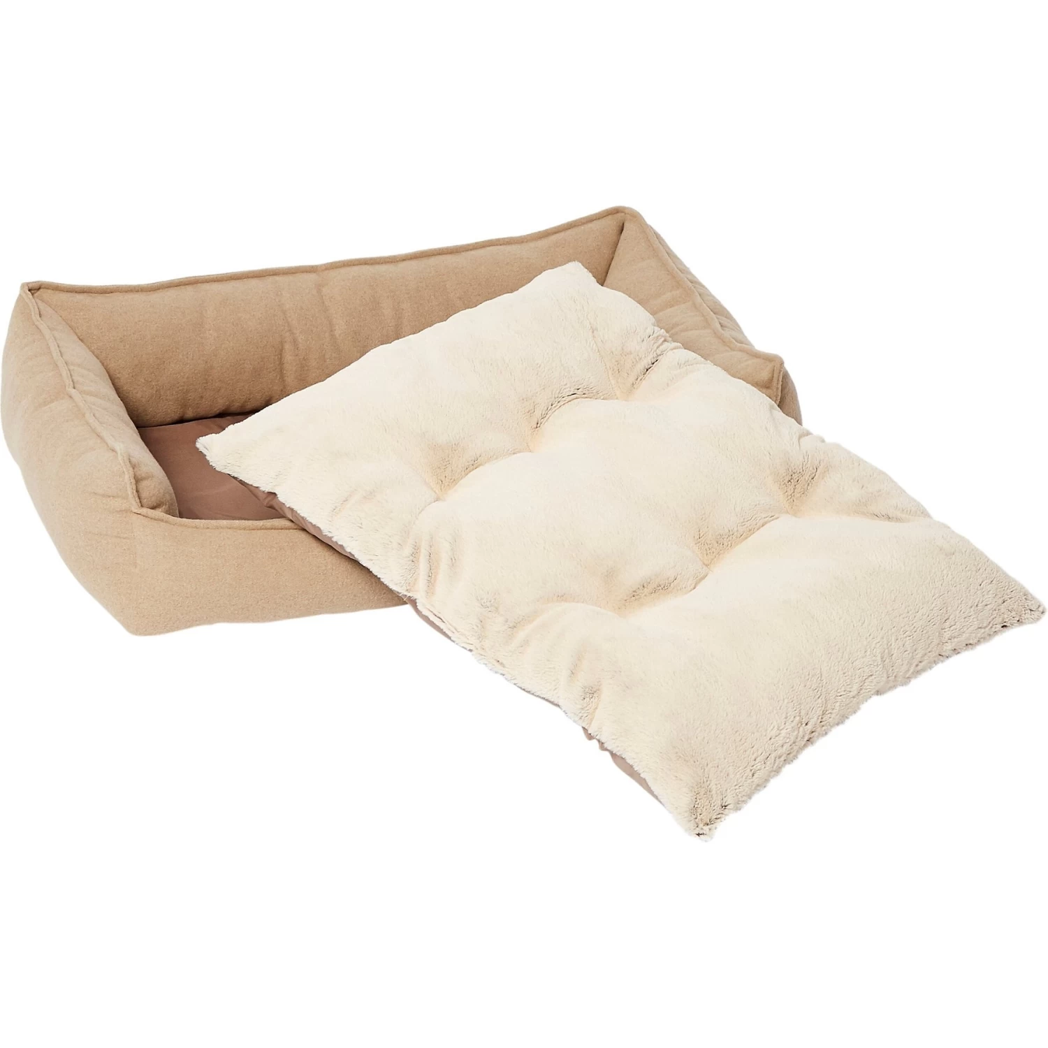 - Heathered woven edge bolsters bring a touch of style to their sleep spot.