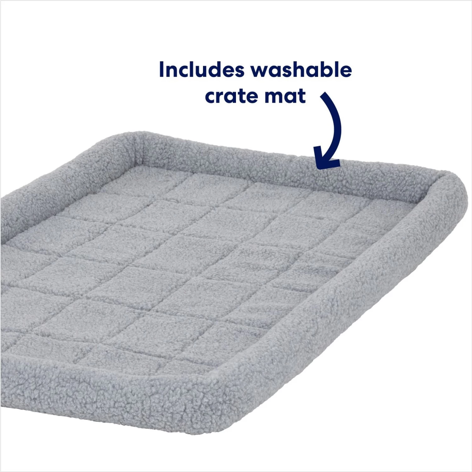 - From Frisco by Chewy. Dog crate and mat kit includes heavy-duty crate, comfy crate mat, removable base pan, crate divider and features a fold-and-carry design with adjustable handles to create a safe and comfortable place for your pup.