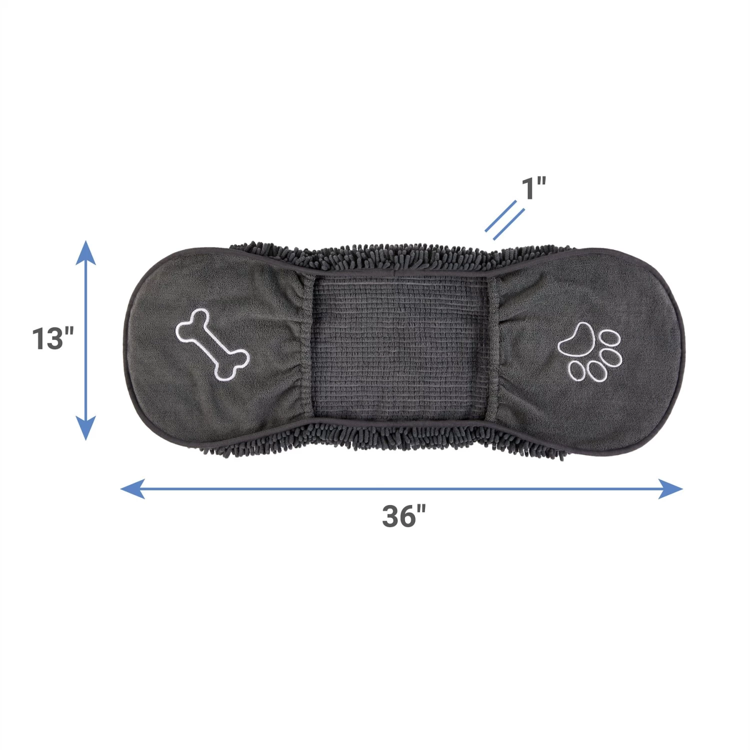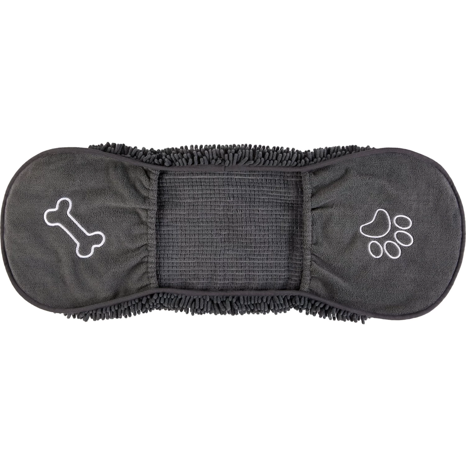 - Made of shaggy, absorbent chenille fabric with bones and paw prints.