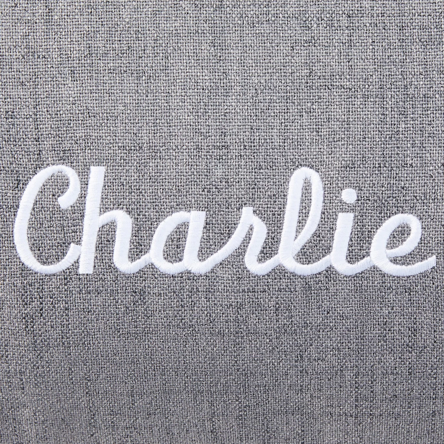 - Choose from white or light gray thread for the embroidery, and flair script or block caps font.