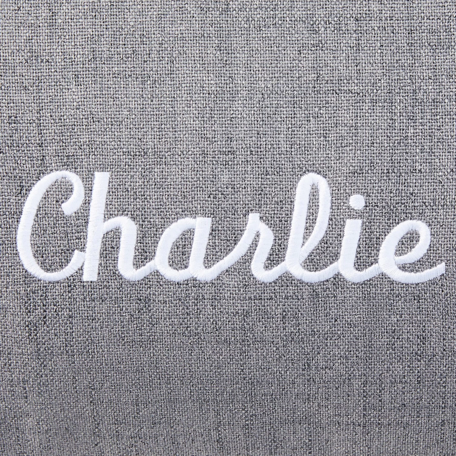 - Choose from white or light gray thread for the embroidery, and flair script or block caps font.