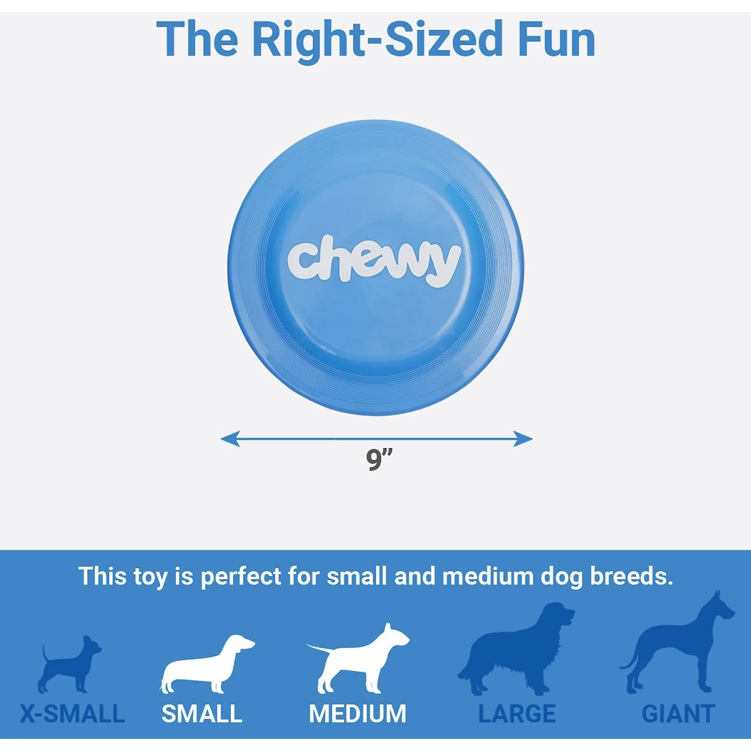 - Features Chewy blue plastic with a big Chewy logo to show off your pet’s favorite shop.
