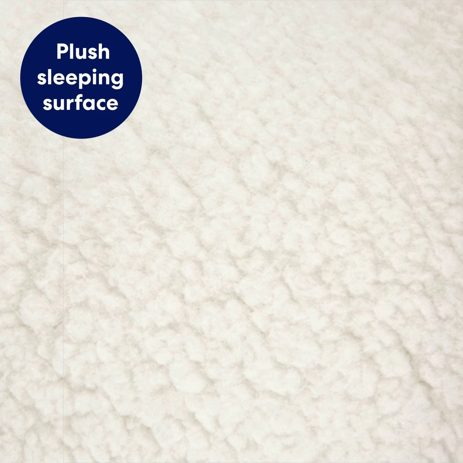 - Two-piece, rectangular-shaped pet bed made with a removable cushion. This double-sided cushion has a polyester-fiber filling with soft, cloud Sherpa on one side and a geometric twill print on the other.