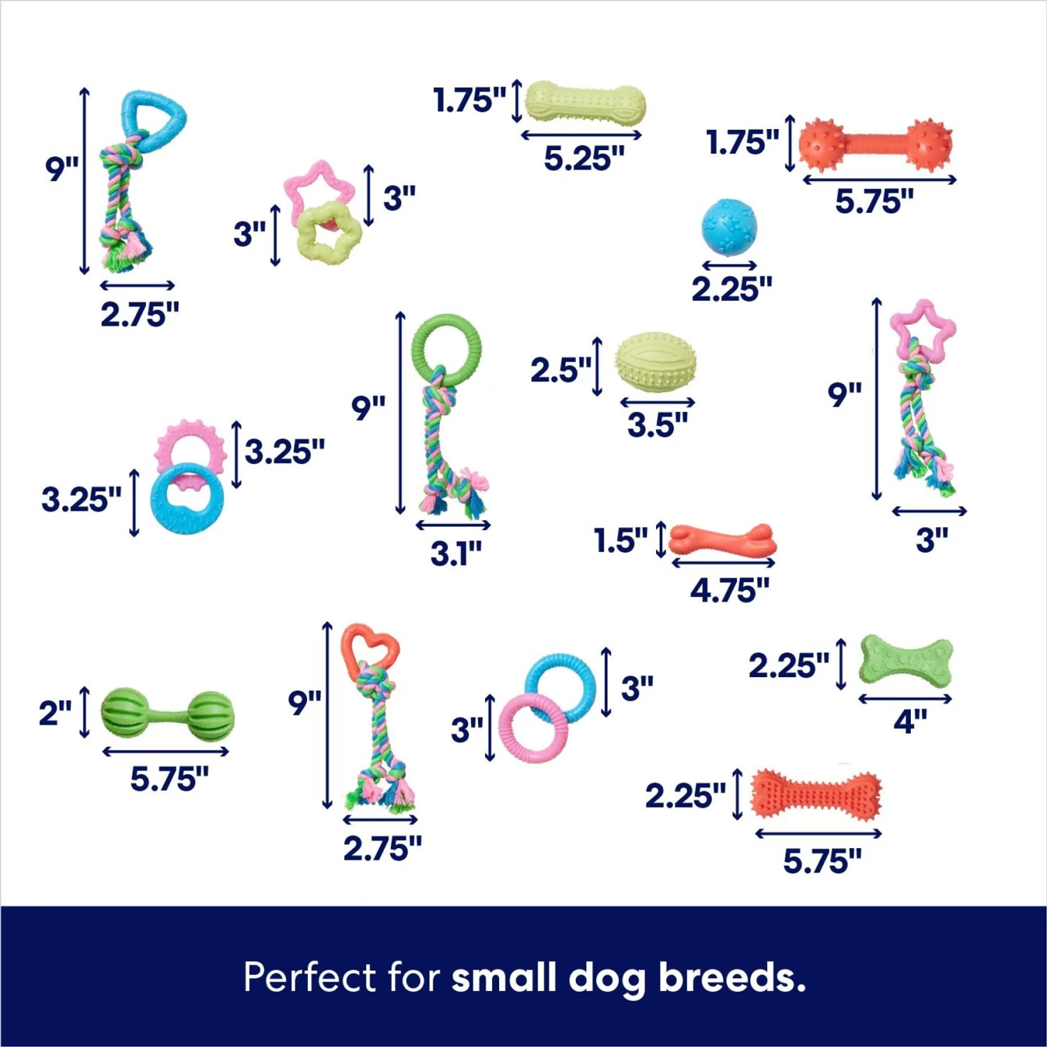 - From Frisco, by Chewy. Boredom had better count its days because this mega-bundle of playroom playmates will have your little pup having the time of their life all day, every day.