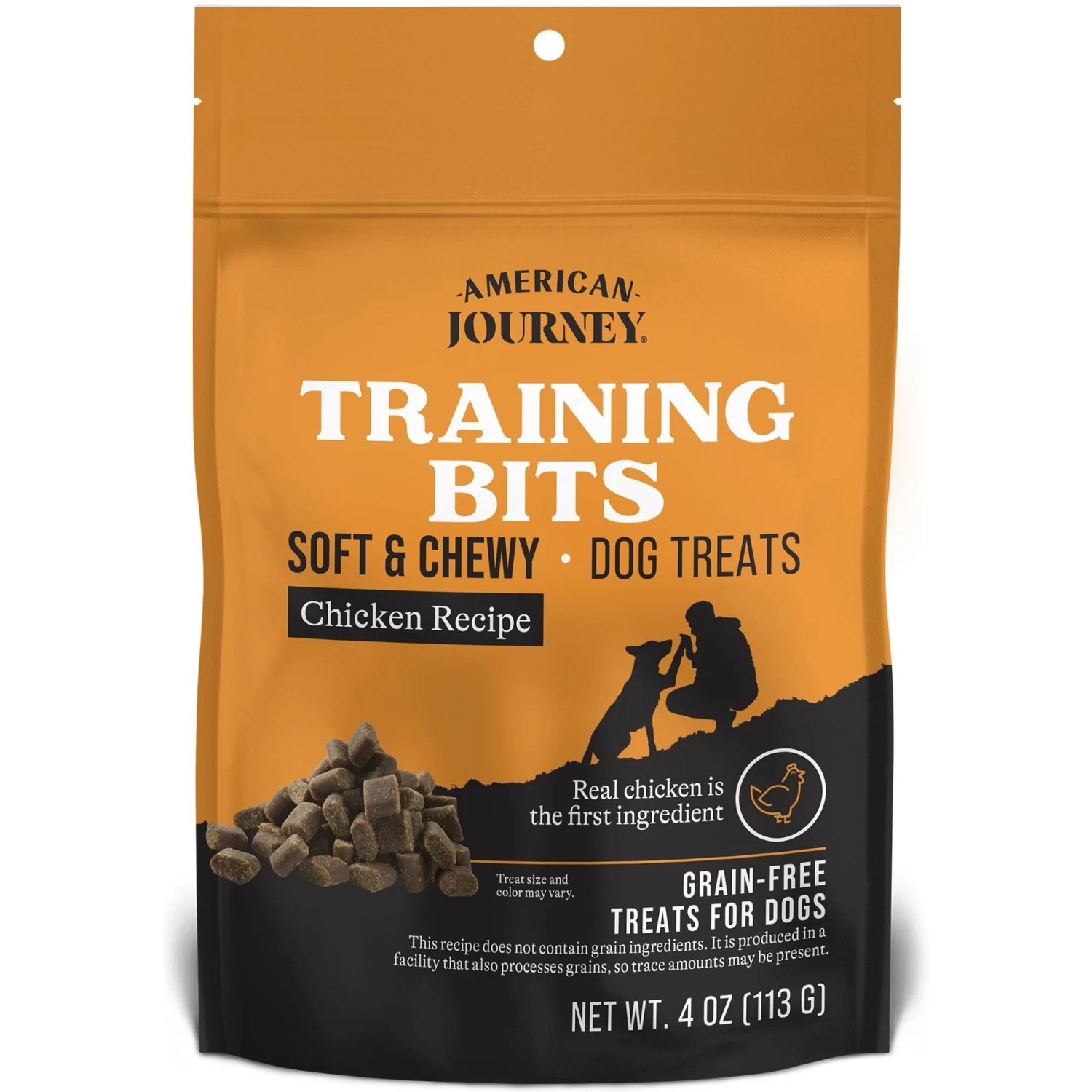 American Journey Chicken Recipe Grain-Free Soft & Chewy Training Bits Dog Treats, 4-oz bag — Reward your sidekick with a chewy, tasty treat that’s just the right size for training. American Journey Soft & Chewy Training Bits are moist, soft bites that are crafted with real chicken as the first ingredient for the taste dogs crave.